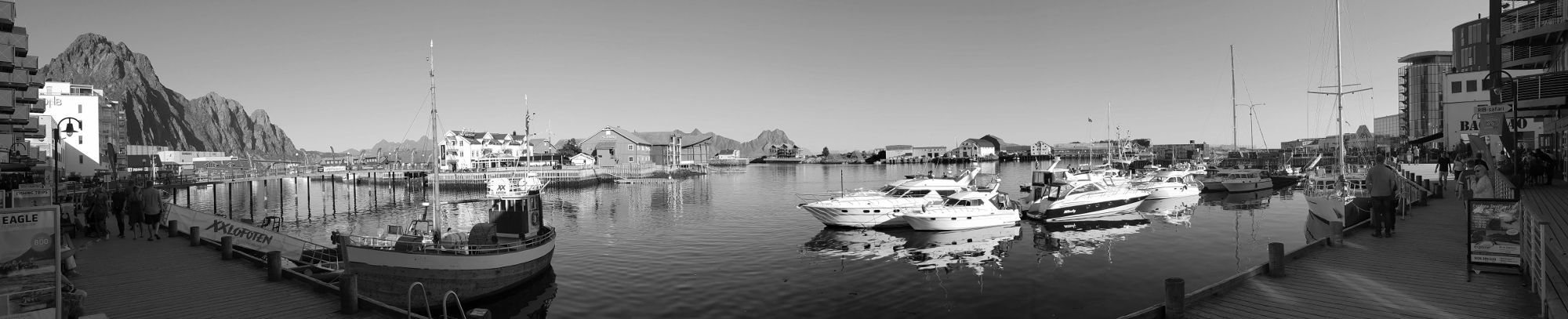 El puerto de Svolvær, con todas sus cafeterías y terrazas. Un lugar para sentarse y disfrutar viendo las entradas y salidas de todos los barcos, entre ellos, el Hurtigruten, el famoso crucero.