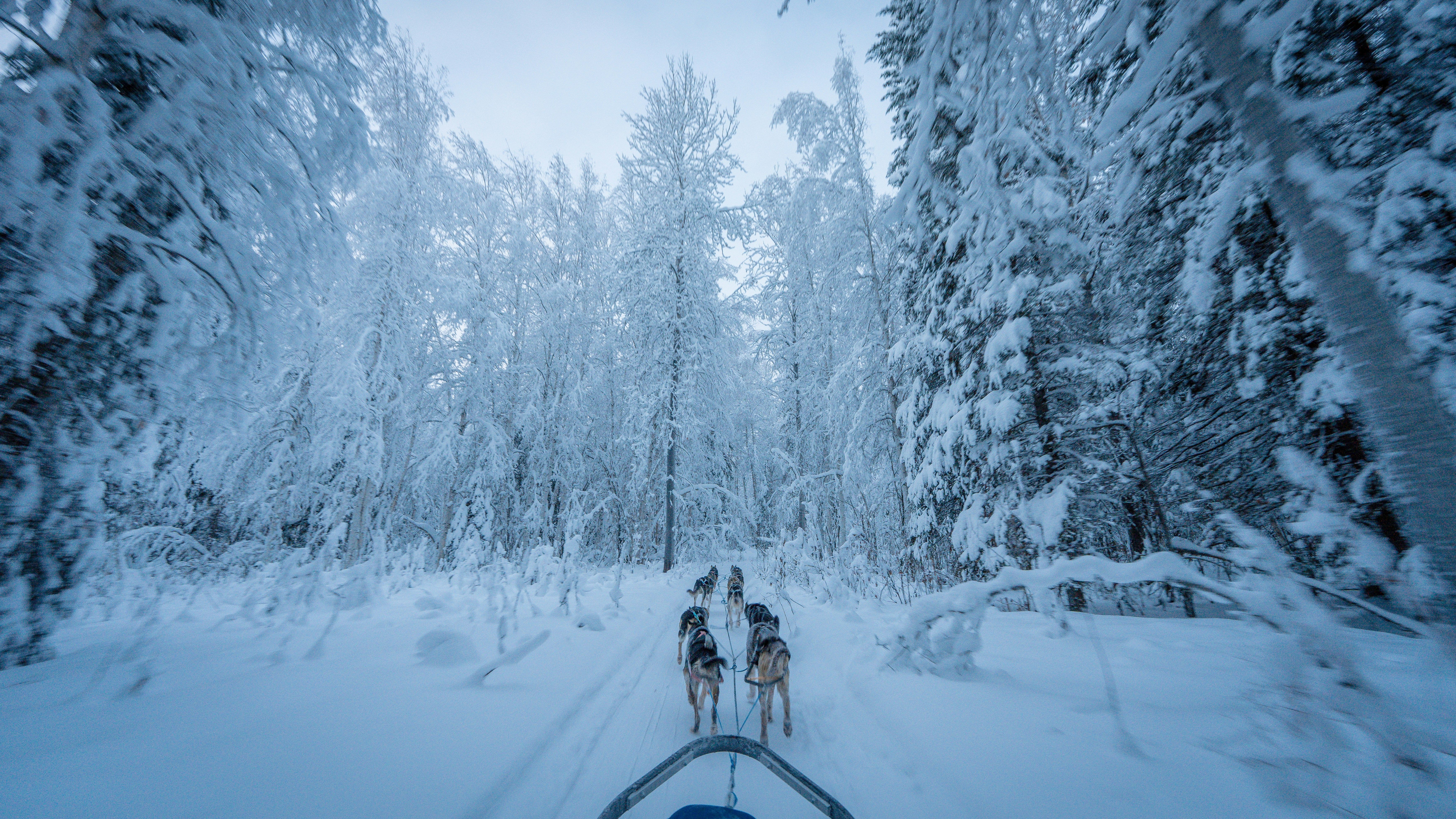 Los días son muy cortos en diciembre y enero (apenas 3-4 horas de luz crepuscular), pero a partir de febrero la luz regresa con fuerza. La nieve cubre todo el paisaje y los lagos se congelan, permitiendo actividades como las motos de nieve o el patinaje sobre hielo natural.